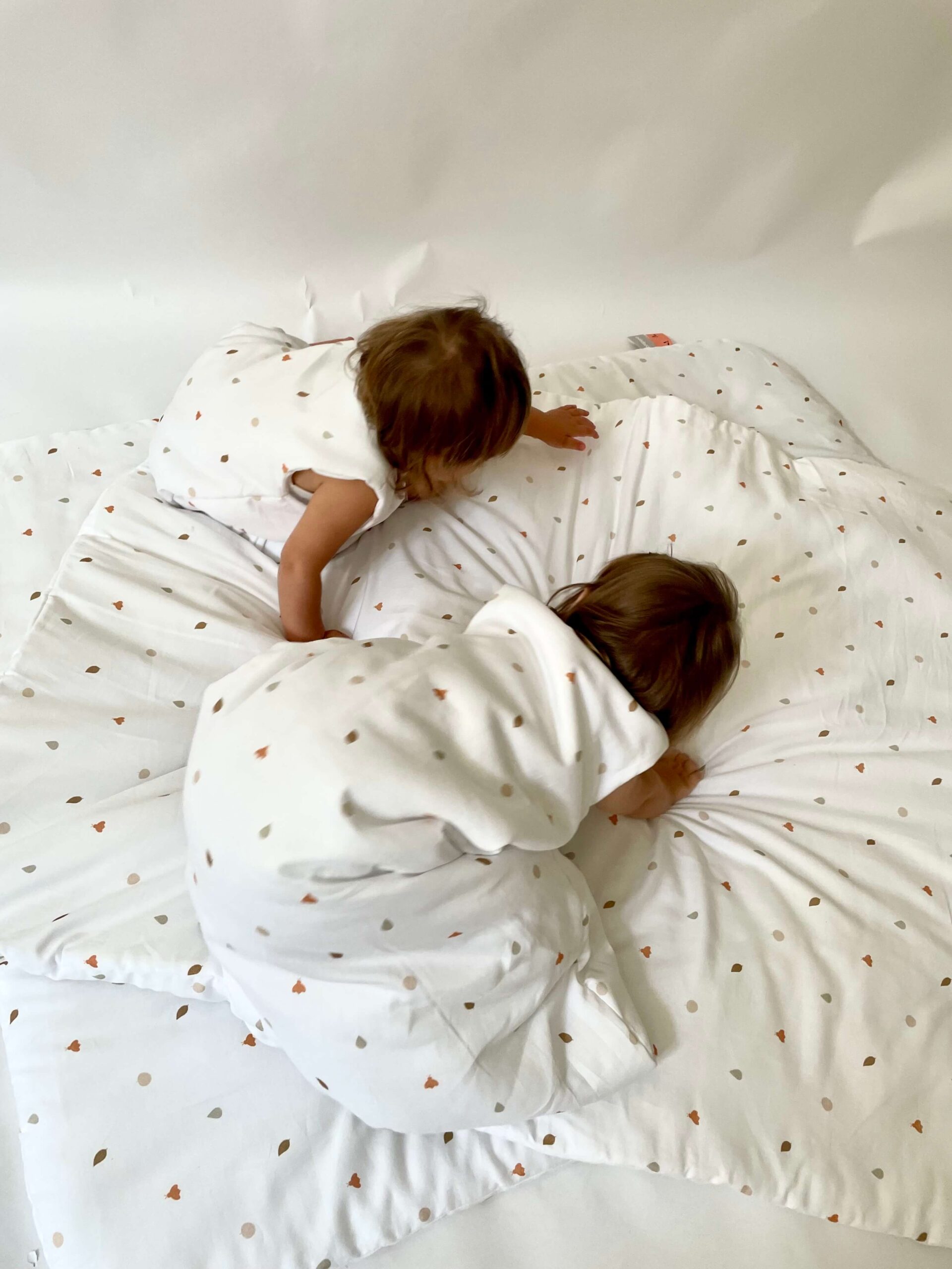 Zastosowane w kołderce i wypełnieniu materiały zapewniają mu naturalną miękkość tuż przy ciałku, odpowiednią temperaturę i kontrolę nad wilgocią w trakcie snu, a fakt, że taką pościel 2 w 1 w całości wrzucasz do pralki, oznacza zawsze stuprocentową czystość. Dla Ciebie to też wygoda, bo znika nudna zabawa z przebieraniem poszewek.