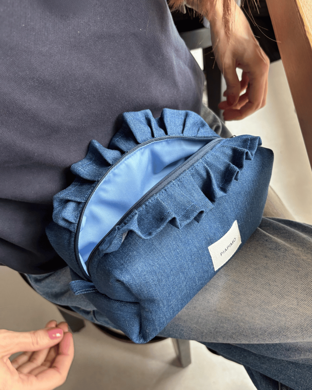 Kosmetyczka z falbaną denim by Piapimo.