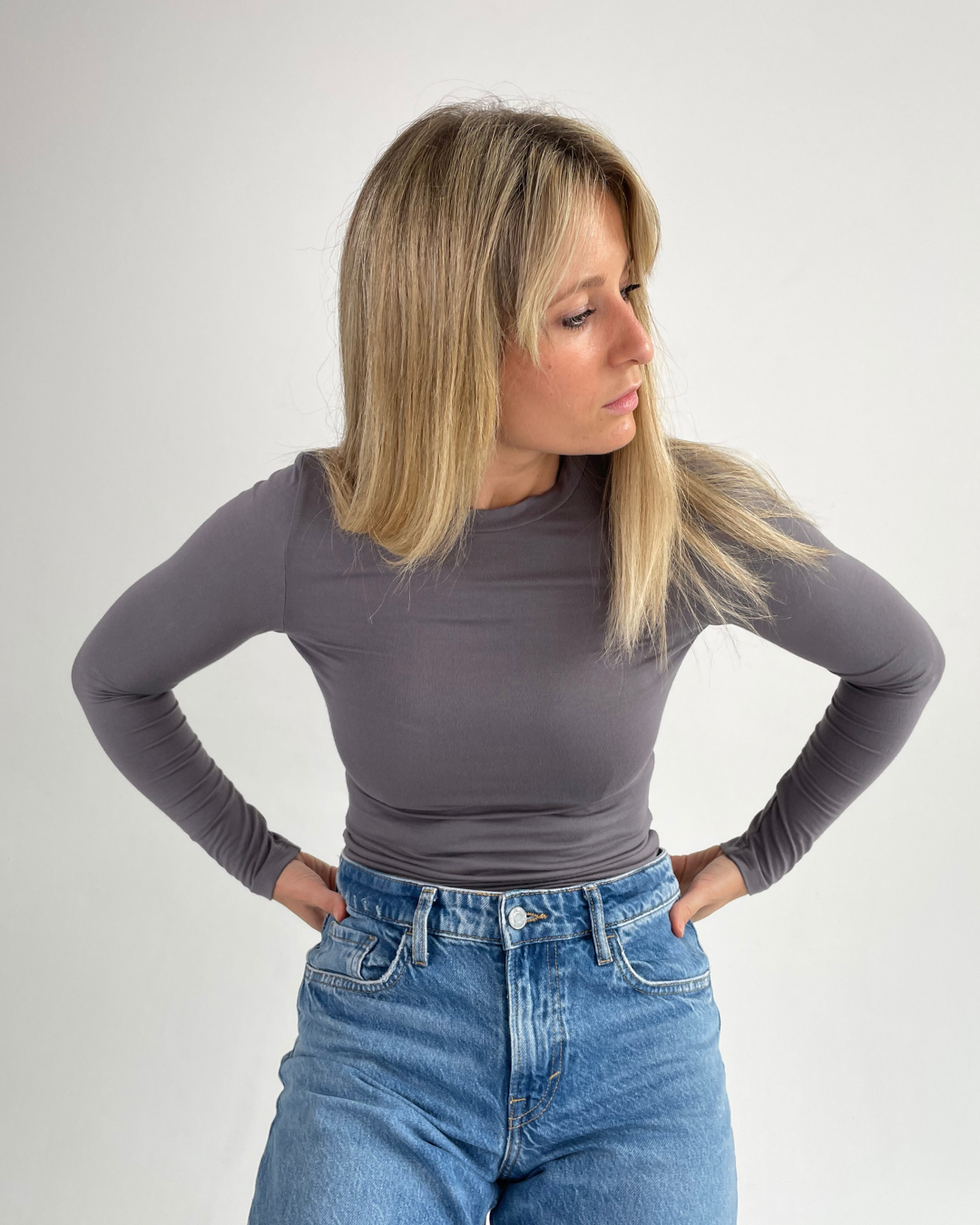 Luna – dopasowany longsleeve wykonany z przyjemnej, naturalnej dzianiny.
