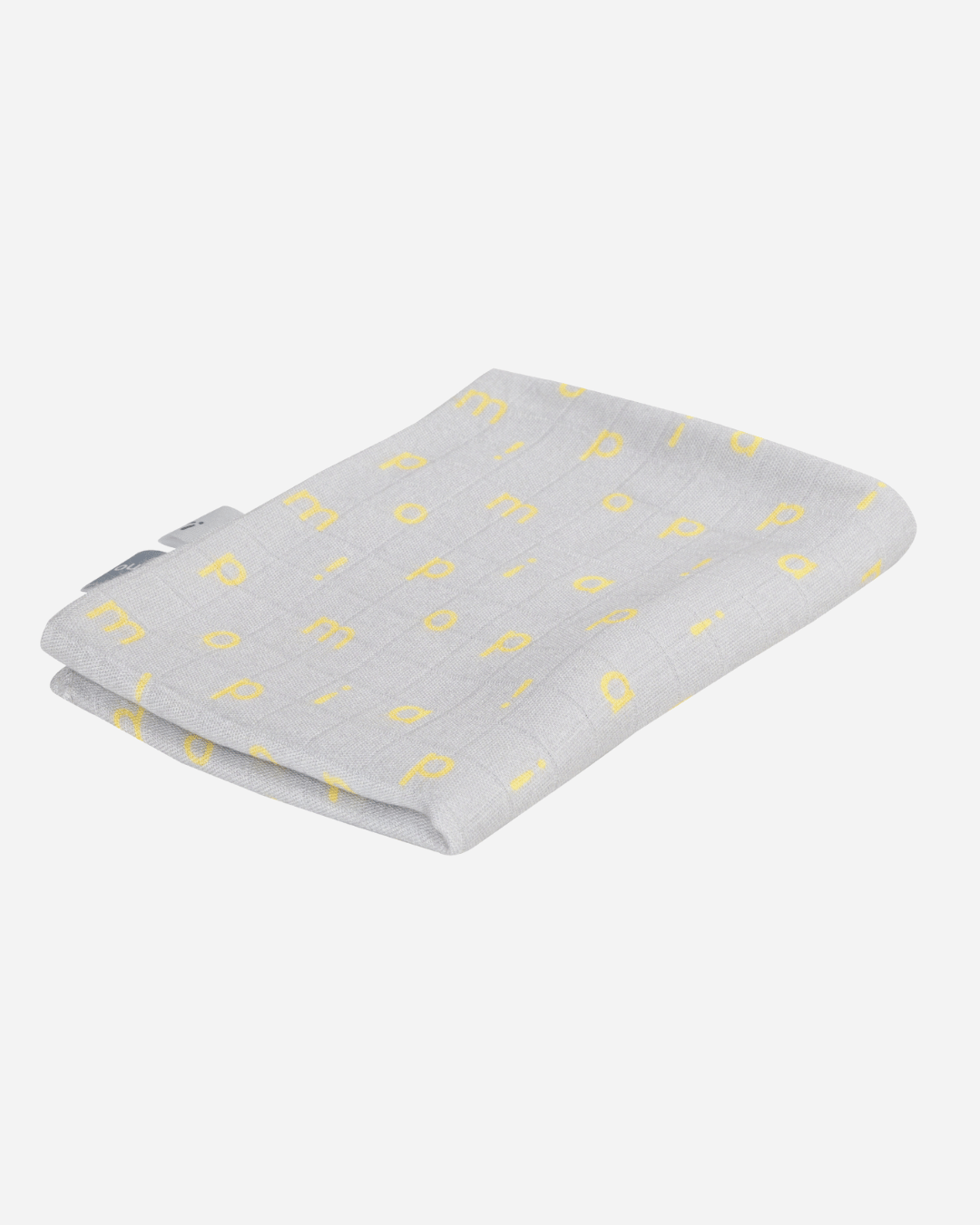 Otulacz 70 x 70 cm bambusowy jasnoszary i żółty literki kolekcja RestNess