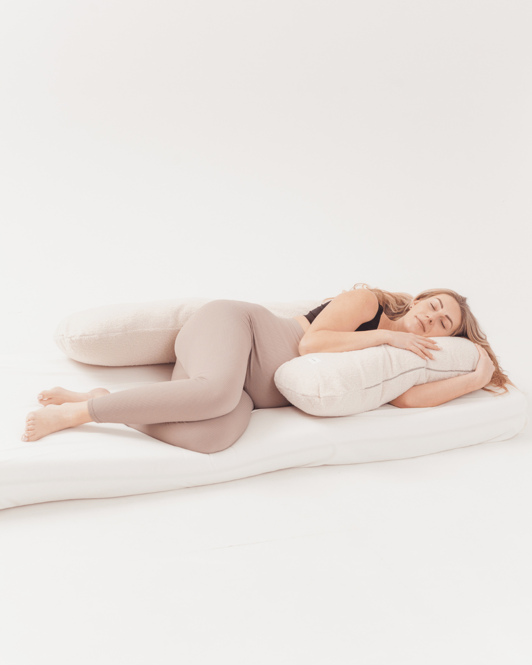 Poduszka do spania w ciąży jest niezwykle prosta w użyciu. Możesz ułożyć ją: