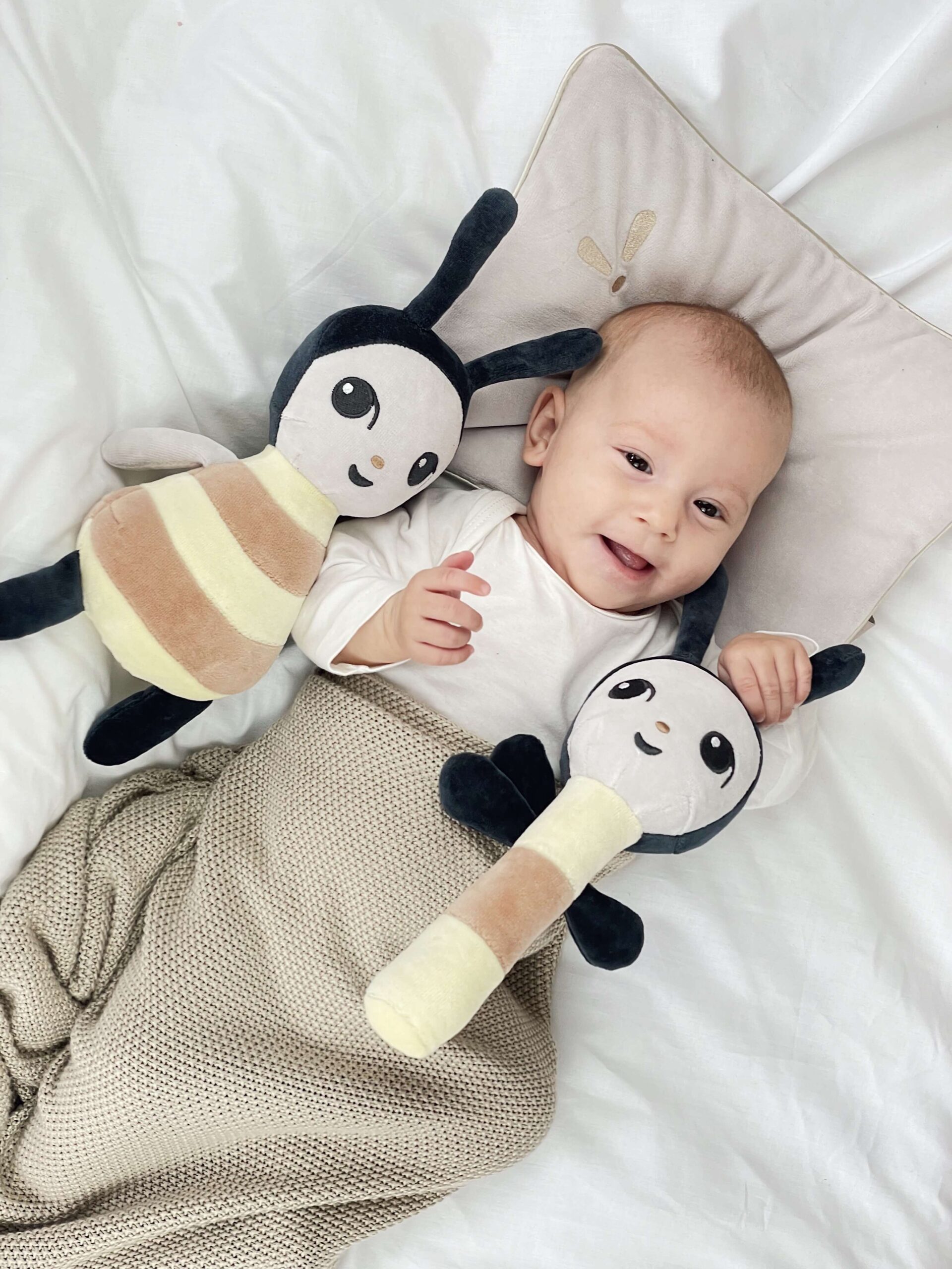 Płaska poduszka welurowa z haftem do wózka. Idealna na pierwsze spacery w gondoli.