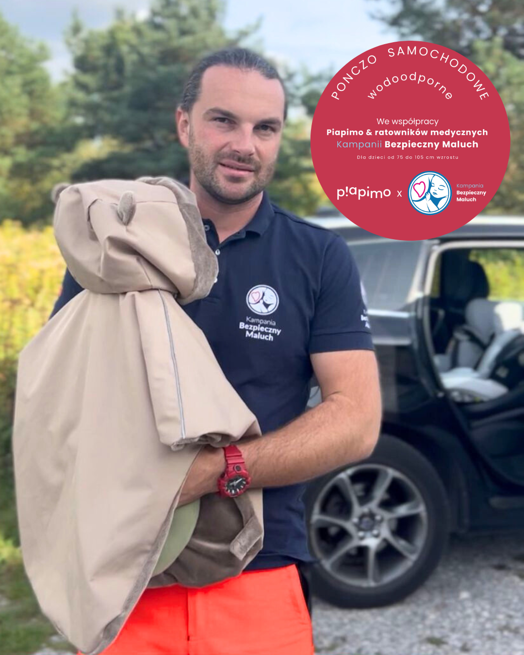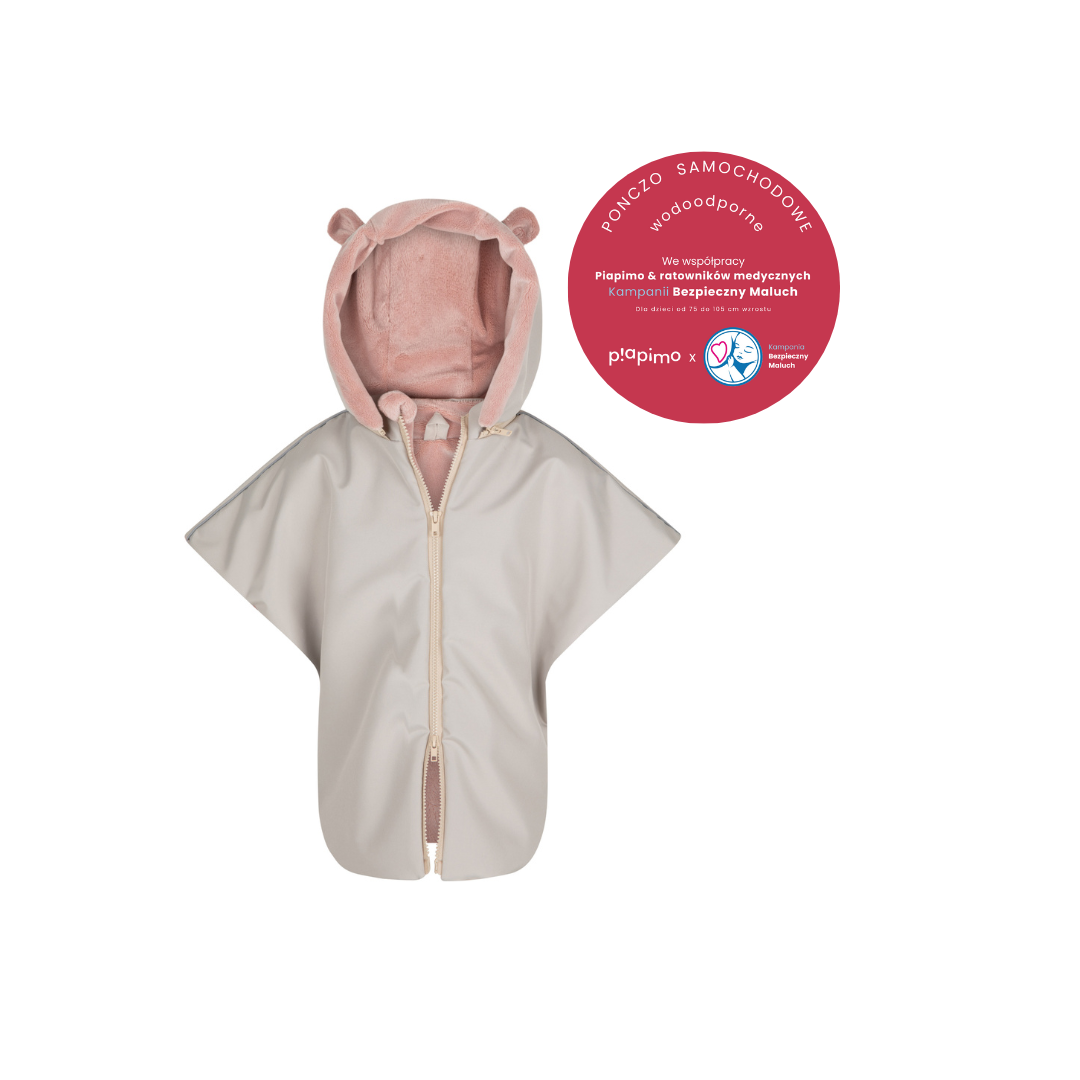Ponczo samochodowe stworzone we współpracy Piapimo & ratowników medycznych Kampanii Bezpieczny Maluch – to bezpieczne przewożenie dzieci w fotelikach samochodowych.