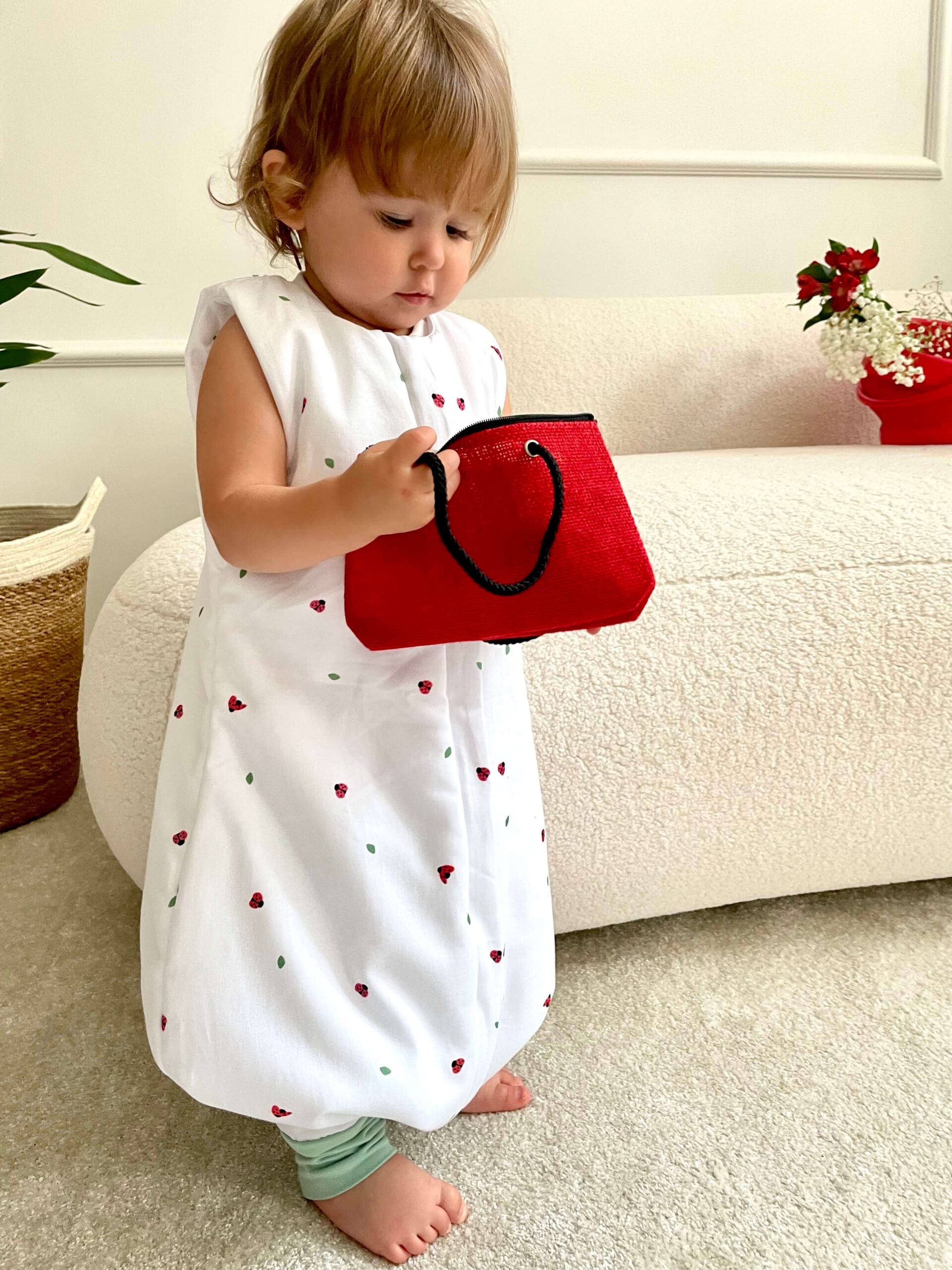 Co w nim takiego genialnego? Komfortowy krój dający Maleństwu pełną swobodę ruchów. Dzięki nogawkom dziecko bez problemów będzie mogło wstać w śpiworku i swobodnie się w nim poruszać. Brak rękawków, żeby nie ograniczać stałego dostępu powietrza. Wygodny dwustronny suwak pozwala rozpiąć suwak również od dołu, co jest pomocne podczas nocnego przewijania dziecka.