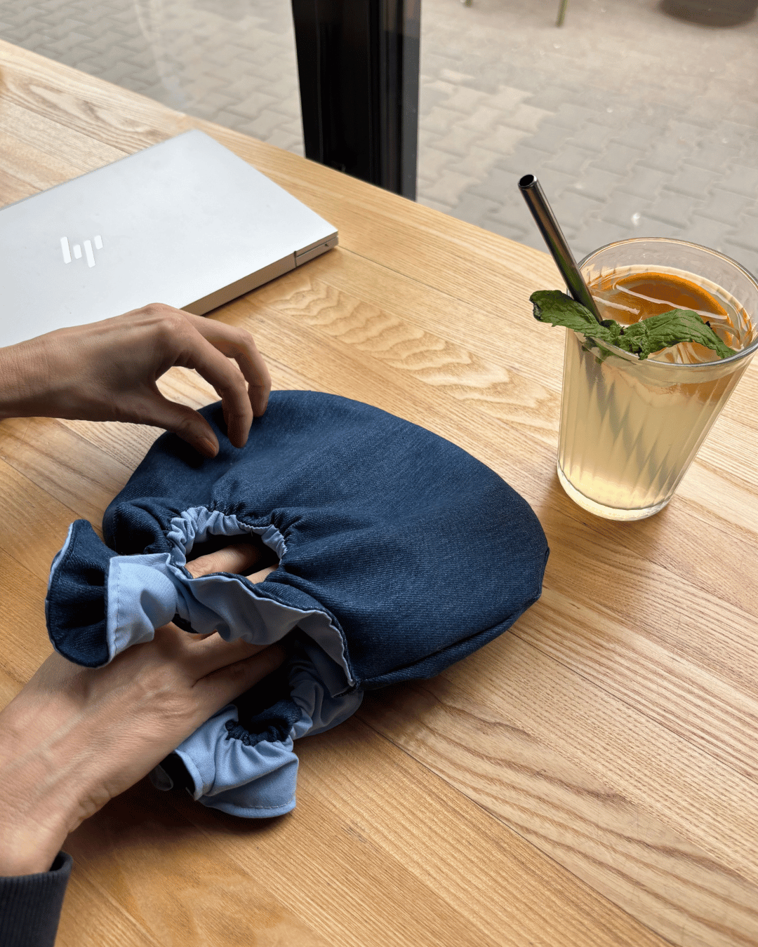 Kolor: na zewnątrz niebieski jeans, wewnątrz gładki niebieski
