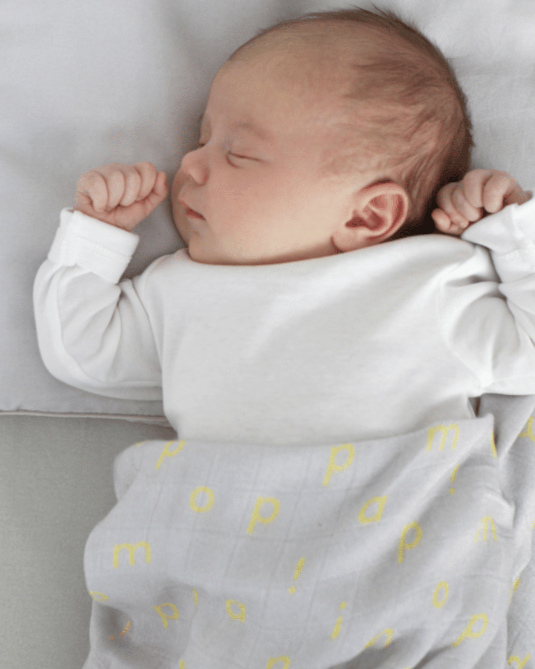 Zestaw dwóch otulaczy bambusowych 70×70 cm piaskowy i szary literki kolekcja RestNess
